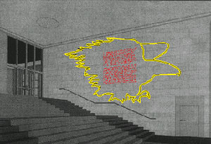 Nachzeichnung des NS-Raubvogels (gelbes Neon)